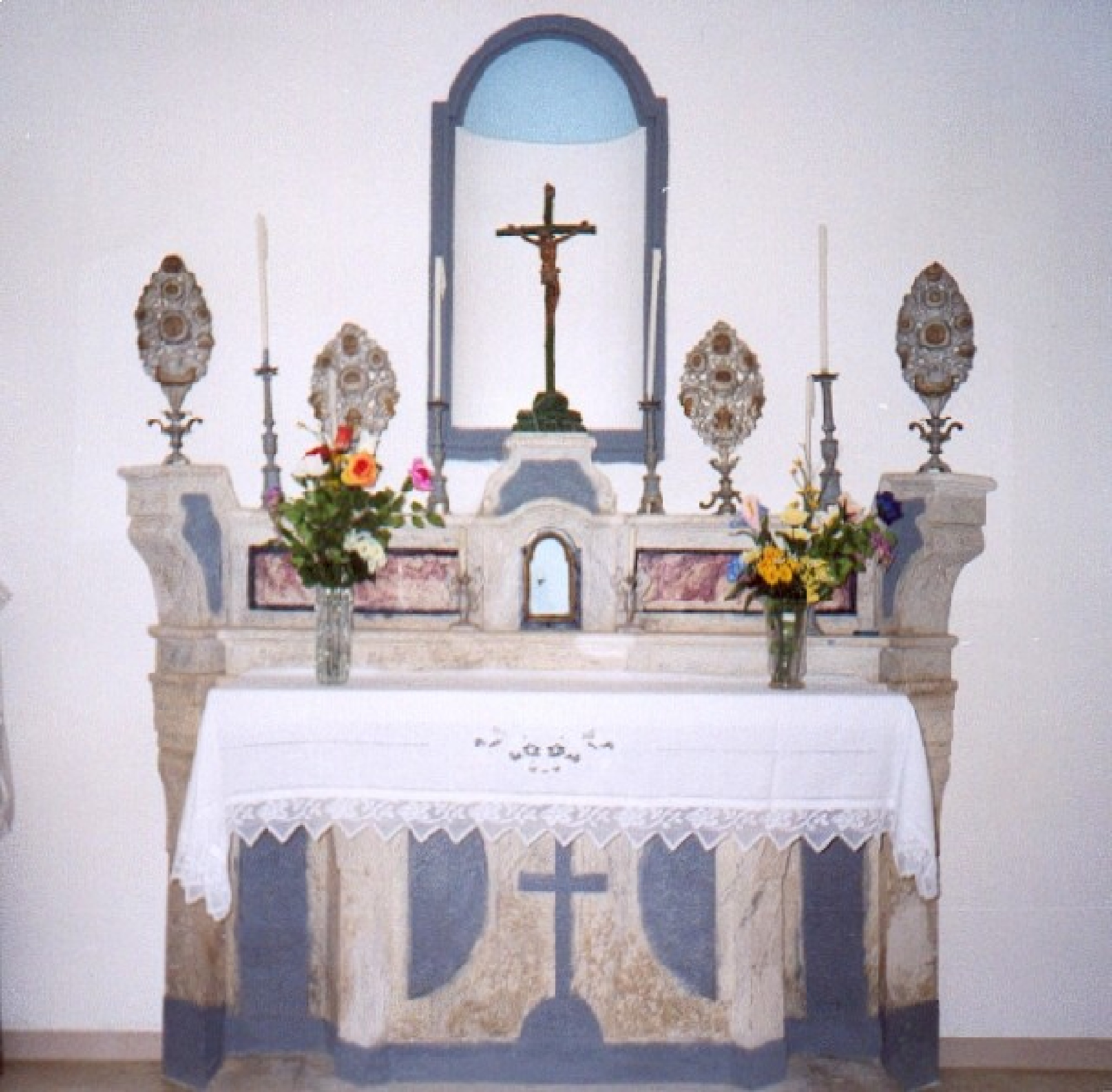 Sie hat ein Dreipassfenster, auf dessen Achse im Inneren ein Altar aus bemaltem lokalem Stein mit einer Nische darüber steht. Hier befand sich ein Gemälde mit der Rosenkranzmadonna zwischen den Heiligen Katharina, Dominikus und Thomas von Aquin, das dem Sellitto zugeschrieben wird.