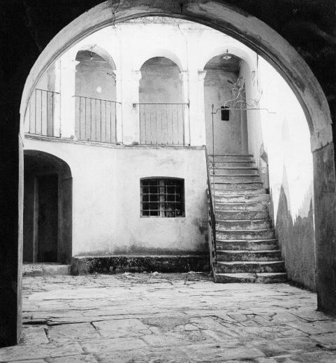 Der Hof weist mit seiner aus dem 18. Jh. stammenden und zur Beletage führenden Steintreppe im ersten Stock Rundbögen auf, die auf verzierten Pfeilern ruhen, mit Lisenen, die die Konsole tragen, über welcher sich eine Terrasse befindet. Diese Säulenanordnung ist nicht in perfekt neoklassischem Stil gehalten, zeigt aber doch den Wunsch nach besonderen architektonischen Elementen, welche den Reichtum der Familie ausdrücken sollten. Auch auf den Stil der Fenster, die sich zum Hof hin öffnen, wurde geachtet: Sie sind oben leicht gebogen und weisen Fenstersimse mit Zierleisten auf. Ein Gesims läuft den drei anderen Außenmauern entlang, und ein Bandgesims verbindet die Fenstersimse und hebt dadurch die beiden Stockwerke hervor.